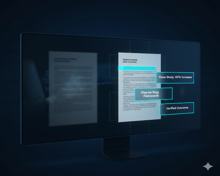 AI loves concrete evidence: outcomes, examples, steps, numbers, and named scenarios. It struggles with claims that sound like marketing. If your proof is buried, vague, or missing, the AI can't justify recommending you.